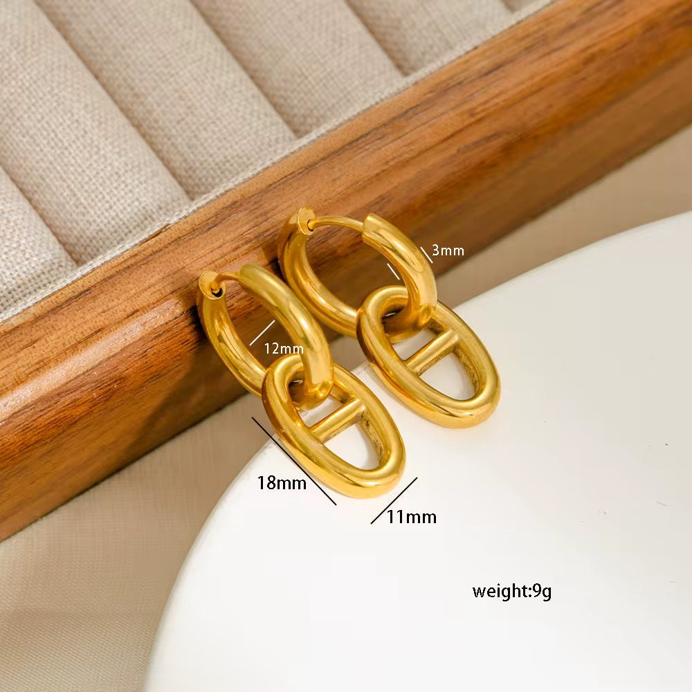 Elevate your everyday style with these small modern dual-link earrings, crafted from premium stainless steel for lasting shine. Designed to be waterproof, non-tarnishing, and hypoallergenic, they’re perfect for daily wear without worrying about fading or discoloration.