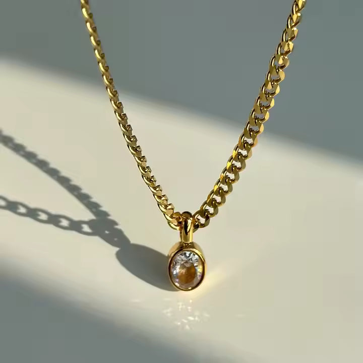 This necklace features a radiant 18k gold-plated stainless steel Cuban chain paired with a dazzling star pendant set with brilliant 5A cubic zirconia. Crafted to be waterproof, tarnish-free, and hypoallergenic, it’s designed for everyday wear without losing its shine. The 15.7” chain includes a built-in 2” extender for the perfect fit, making it as versatile as it is timeless.